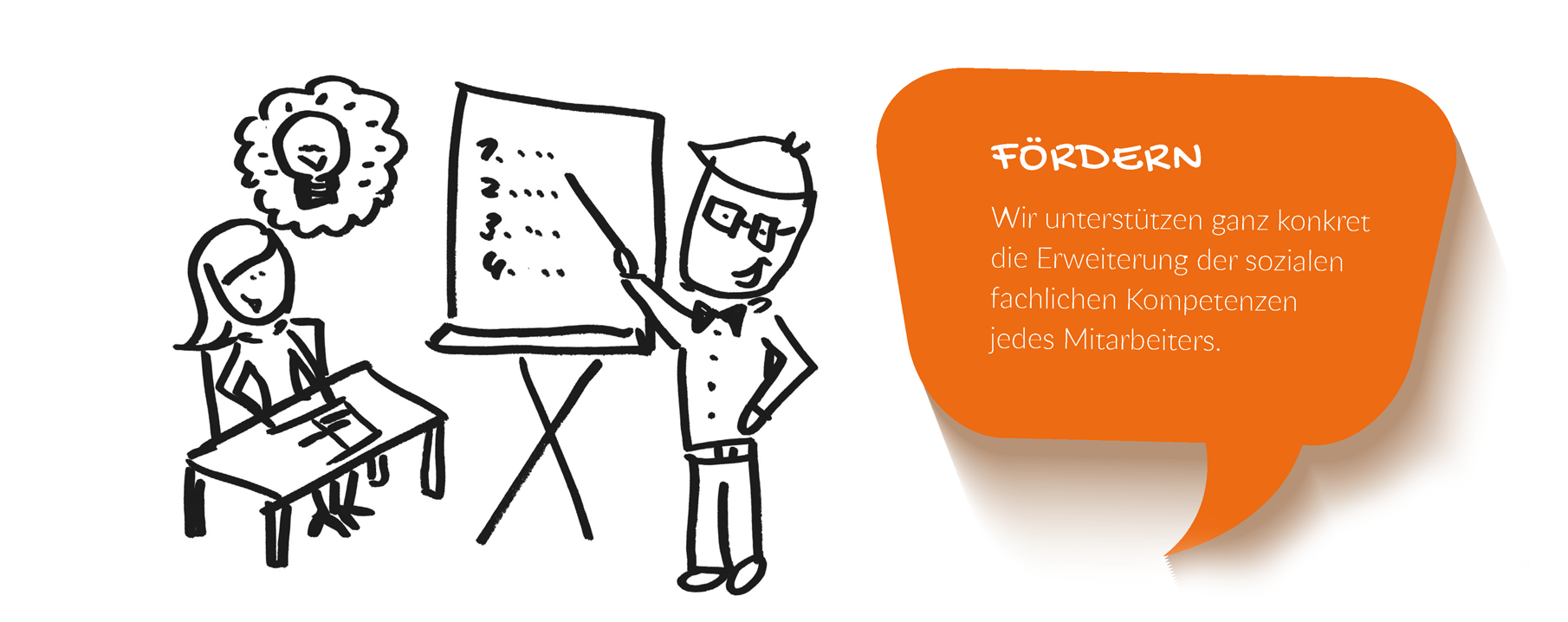Räume zum Leben – nicht nur für unsere Bewohner, sondern in ganz besonderem Maße auch für unsere Mitarbeiter. Deswegen schaffen wir Rahmenbedingungen, in denen sich jeder Mitarbeiter willkommen und aufgehoben fühlt. Innerhalb verlässlicher Strukturen hat dabei jeder Einzelne die Möglichkeit, Verantwortung zu übernehmen und zur Umsetzung der gemeinsamen Ziele aktiv beizutragen. Erwartungen formulieren wir klar und deutlich und erwarten dies auch von unseren Mitarbeitern. Gezielt entwickeln wir die Potentiale unserer Mitarbeiter und geben ihnen den Freiraum für eine individuelle Entwicklung, die wir aktiv fördern. Dabei würdigen wir gute Leistungen und betrachten ein kritisches Feedback als Chance zur Weiterentwicklung. Eine wertschätzende und zielgerichtete Kommunikation auf Basis gegenseitigen Vertrauens und Respekts ist dabei für uns selbstverständlich.